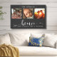 Este impresionante cuadro mural de lona presenta un hermoso collage de fotos de tres marcos que muestra recuerdos preciados, adornado con el mensaje más sincero: "Hogar, no sólo un lugar, sino un sentimiento". El elegante diseño en blanco y negro, combinado con un exquisito guión y una tipografía de impresión, crea una pieza sofisticada y duradera que complementará cualquier estilo interior. Personalízalo con tu apellido. Creado por Simply Farmhouse Press.