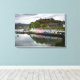 Paisaje de lienzo de las coloridas casas portuarias de pescadores de la ciudad de Portree, con reflejo en el agua fija del mar en la Isla de Skye en Escocia, Reino Unido.