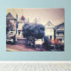 La imagen muestra una hilera de casas de estilo victoriano encaramadas en una ladera empinada. Las casas están pintadas en tonos suaves y mullidos de blanco y gris, con detalles intrincados y adornos decorativos. Un gran árbol frondoso ocupa un lugar destacado en el primer plano, con sus ramas que se dirigen hacia el cielo. Las casas están rodeadas de exuberante vegetación, lo que crea una sensación de tranquilidad y encanto.