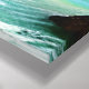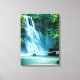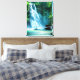 Lienzo en un ilustracion de una cascada de agua azul pálido con spray blanco, rodeado de rocas y hojas verdes