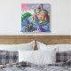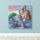 Si amas a las sirenas, entonces esta pintura es para ti. El Castillo de la Sirenita pintado por Traci Van Wagoner presenta una sirena con el pelo púrpura delante y una sirena con el pelo verde que se solea en las islas rocosas, mientras que otra sirena con el pelo rosado nada en el océano frente a un castillo con un cielo morado, naranja y amarillo atardecer detrás. Este hermoso y caprichoso arte de fantasía hace un gran regalo y una impresionante decoración para tu oficina o casa.