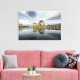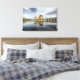 Paisaje de lienzo impreso en el histórico Castillo Eilean Donan en una mañana tranquila con reflexión en el agua estancada en la costa occidental de Escocia, cerca de la Isla de Skye.