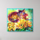 Colorido y expresivo gato con girasoles pintura acrílica de Bulgan Lumini.2005
