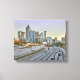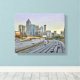 Una toma de los rascacielos del centro de Atlanta, frente al frente de la carretera Interstate 85 pasando por la ciudad cerca de la puesta de sol en una noche de sábado.