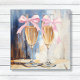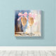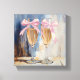 Esta impresión en lienzo con estilo de pintura en seco con pinceladas presenta dos copas de champán altas que se mantienen una al lado de la otra, cada una adornada con delicados lazos rosados. El fondo suelto y texturizado combina azules suaves, grises y blancos, creando una atmósfera elegante pero relajada. Perfecta para celebraciones, bodas o fiestas de despedida de soltera, esta obra de arte es un regalo hermoso y añade un toque de sofisticación festiva y encanto romántico a las salas de comedor o espacios de estar chic.