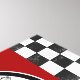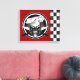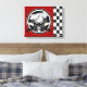 Wiley Skull Chef entre un fondo de color puro a la izquierda y un fondo a cuadros negros y blancos a la derecha. El color puro (negro) se puede cambiar para que se ajuste a la decoración. Excelente para el chef principal, o genio culinario.