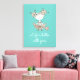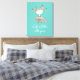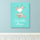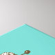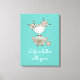 Ilustración caprichosa que presenta a una chica con moños en el cabello asegurados con agujas de tejer enrollando una bola de lana. "La vida es mejor con lana" texto blanco sobre fondo turquesa