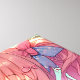 Chica de anime acuarela en colas de cerdo, con arcos morados en el pelo, rodeada de mariposas en un bonito día de verano.