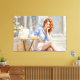 Lienzo Chica de belleza de cabello rojo sentado en un caf