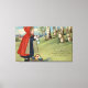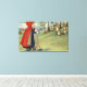 Lienzo Chica de capucha roja entregando huevos a conejos