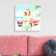 Lienzo Chica en la playa con un coche clásico