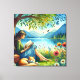 Lienzo Chica leyendo un libro bajo un árbol con un gato s