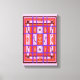 Esta impresión de lienzo/lienzo envuelto tiene "poder chica" / manto curvado tiene el diseño / arte de mí, Kristie Hubler, llamado "manta curvada" es arte popular femenino / feminista abstracto, con mis garabatos de pelucas, espirales, curvas, cues curas, puntos y flores insertadas en un marco rígido y estructural de plaid, en el colores de color azul turbio oscuro, violeta rosa, rosa salmón, rosa, coral, naranja, oro y marrón rojizo con sangre de bueyes.