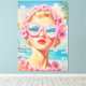 Pasar a un verano retro de ensueño con esta vibrante obra de arte generada por el aire que presenta a una mujer glamurosa con gafas de sol florales que reflejan una playa tropical. Con una estética vintage y un ambiente costero pastel, este diseño es perfecto para los amantes del verano, los amantes de la moda y la decoración de inspiración playera. Ideal para impresiones, estuches de teléfono y accesorios de moda.
