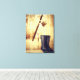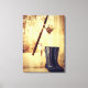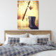 Un divertido arte de lienzo con botas de pesca de goma de las mujeres, carrete de pesca y tazas de café porque "los Chicas también pescan".