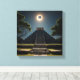 The majestic pyramid of Chichen Itza silhouetted against a night sky during a total annular solar eclipse.