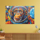 Esta obra de arte de Otis Porritt presenta un sorprendente retrato de un chimpancé encerrado en un casco espacial. Representado con texturas audaces y similares al impasto, la cara del primate estalla con un caleidoscopio de tonos vibrantes, desde azules y púrpuras profundos hasta naranjas y rojos intensos. La visera reflectante enmarca su intensa mirada, mientras que el cosmos circundante explota con nebulosas arremolinadas y planetas distantes en una interacción dinámica de color y luz. La aplicación rica y en capas del color crea una experiencia visual poderosa y casi táctil, que captura una sensación de asombro y exploración.