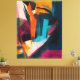 Bold planes of color collide and converge in Chromatic Crosscurrents, an abstract composition driven by motion, contrast, and layered energy. Vivid teal, magenta, and molten orange slice through deep shadowed forms, creating a sense of tension balanced by luminous negative space. Expressive brushwork and sharp directional lines evoke movement and transformation, making this canvas print a striking focal point for modern interiors, creative studios, or contemporary collections.