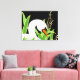 Arte estilizado de un cisne blanco entre follaje sobre fondo negro