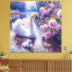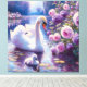 Lienzo Cisne blanco y cigneto con rosas púrpuras
