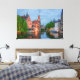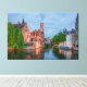 Lienzo Ciudad antigua y torre Belfry de noche en Brujas