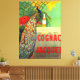 Poster de publicidad de coñac de época Brillantes colores y un bello pavo real muestran una botella de coñac.