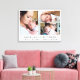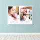 Impresión en lienzo de fotos de bebé recién nacido con tres fotos de tu bebé contra un fondo blanco y el nombre de tu bebé y estadísticas de nacimiento en fuentes negras. ¡Añade tres fotos de tu adorable bebé, su nombre, fecha y hora de nacimiento, y altura y peso también! ¡Una impresión en lienzo limpia y minimalista para el cuarto del bebé!