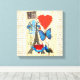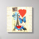 Viejo y romántico collage de París con la Torre Eiffel , París Francia con valentinas rojas adoran los globos cardíacos y la mariposa azul bonito y pájaro pavo real y fleur de lys, sobre un fondo de postal antiguo. Copyright Oconnart.