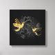 Colibríes con joyas negras y doradas sobre un fondo gris adornado con plantas. Aves de joyas. Ave dorada. Ave dorada.
