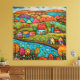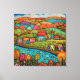 Un cuadro alegre y vibrante que exhibe un pueblecito pintoresco enclavado entre colinas onduladas. La obra de arte cuenta con una paleta de colores divertida y detalles caprichosos que crean una escena alegre e imaginativa.
