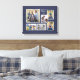 "Impresión de tela de Collage de fotos de 6 de la Armada de Bendiciones de la Abuela." ¡Tus fotos favoritas de 6 familias y nietos son fáciles de subir para un regalo personalizado para ella al tesoro durante toda la vida! El color acuático pintado a mano fondo de madera azul marino es ideal para una moderna decoración casera al estilo de una granja. Arte de la artista y diseñadora con licencia internacional, Audrey Jeanne Roberts, copyright.