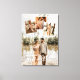 Un lienzo romántico al que puedes añadir cuatro de tus fotos bodas. Una foto cubre todo el lienzo. Elige uno con mucho espacio negativo en la mitad superior de la foto. Añade tres fotos más de tu elección para que encajen dentro de pequeños marcos impresos blancos. El matrimonio está escrito en un guión rápido en blanco al final del lienzo adorable. Lienzo de boda keepsake personalizado con cuatro fotos bodas.