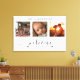 Este impresionante cuadro mural de lona presenta un hermoso collage de fotos de tres marcos que muestra recuerdos preciados, adornado con el mensaje más sincero: "Bienvenidos a nuestra historia". El elegante diseño en blanco y negro, combinado con un exquisito guión y una tipografía de impresión, crea una pieza sofisticada y duradera que complementará cualquier estilo interior. Personalízalo con tu apellido. Creado por Simply Farmhouse Press.