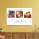 Este impresionante cuadro mural de lona presenta un hermoso collage de fotos de tres marcos que muestra recuerdos preciados, adornado con el mensaje más sincero: "Sigamos en casa". El elegante diseño en blanco y negro, combinado con un exquisito guión y una tipografía de impresión, crea una pieza sofisticada y duradera que complementará cualquier estilo interior. Personalízalo con tu apellido. Creado por Simply Farmhouse Press.