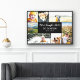 Lienzo impreso con ocho de tus fotos enmarcadas por un borde negro. El amor de risa en vivo está escrito en un guión de caligrafía blanca, con corazones separando las palabras. Agregue su nombre familiar en un encantador tipo de letra escrito a mano.