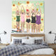 Moderno Collage Wall Art. Esta es una antigua piscina retro sincronizada con bellezas de baño con flores y mariposas. Colores de naranjas, rosa, amarillo, rojo, violeta, azul suave y verde. Diversión, humor y ephemera ecléctica. Se trata de una superficie plana con un acabado liso. Arte divertido y surrealista que combina el collage con las técnicas de arte digital, con un toque retro vintage de mediados de siglo.