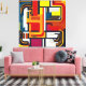 Esta impresión de lienzo presenta un diseño abstracto audaz de líneas geométricas entrelazadas y bloques de color vibrantes. La composición combina tonos rojos, amarillos, naranjas, verde azulados y blancos, creando una dinámica obra de arte moderno que aporta energía y movimiento a cualquier espacio. Perfecto para los interiores contemporáneos, se añade un punto focal llamativo con su profundidad estratificada y simetría fluida.