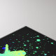 Fabuloso color arcoiris salpican mítico unicornio que aparece en un fondo negro; con un efecto neón de luz de texto gráfico "Unicorn" a través de él.