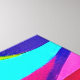 Colorido paisaje abstracto de colinas y un océano en colores de rosa, púrpura, azul, verde y cian.