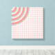Círculos Concéntricos Coloridos y personalizables Lienzo con fondo gris bajo un segundo fondo de pequeños círculos concéntricos de baldosas y finalmente el mismo círculo concéntrico colocado a gran escala, y recortado para revelar sólo un cuarto del círculo, colocado en la esquina superior derecha del lienzo. Cuatro de los mismos lienzos trabajarán juntos para crear un gran círculo completo en el medio.