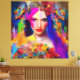 Una mujer usa un colorido collage de medios mixtos de moda generado por IA