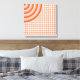 Círculos Concéntricos Coloridos y personalizables Lienzo con fondo blanco debajo de un segundo fondo de pequeños círculos concéntricos de baldosas y finalmente el mismo círculo concéntrico colocado a lo grande, y recortado para revelar sólo un cuarto del círculo, en la esquina del lienzo. Cuatro de los mismos lienzos trabajarán juntos para crear un gran círculo completo en el medio como una imagen dividida.