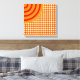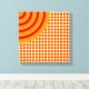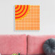 Círculos Concéntricos Coloridos y personalizables Lienzo con fondo blanco debajo de un segundo fondo de pequeños círculos concéntricos de baldosas y finalmente el mismo círculo concéntrico colocado a lo grande, y recortado para revelar sólo un cuarto del círculo, en la esquina del lienzo. Cuatro de los mismos lienzos trabajarán juntos para crear un gran círculo completo en el medio como una imagen dividida. El fondo "blanco" se puede cambiar por el color elegido.