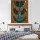 Resumen digital original, esta pieza combina texturas táctiles y similares a pinceladas con formas de anillos concéntricos y una audaz pincelada vertical azul turquesa para crear una composición moderna y escultórica. Los dorados cálidos y ocres contrastan con el azul turquesa fresco para producir una paleta refinada y de estilo de mediados de siglo que funciona bien en interiores contemporáneos y eclécticos.