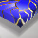 Composición de lujosas mariposas de zafiro y joyas de oro sobre fondo de textura azul.