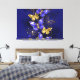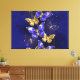 Composición de lujosas mariposas de zafiro y joyas de oro sobre fondo de textura azul.