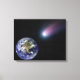 Composición digital de un cometa que se dirige a la Tierra destacada con masa terrestre.