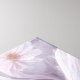 Flores de cosmos delgadas en tonos blancos y rosados entrelazados con una cinta rosa de advertencia sobre el cáncer de mama que fluye contra un fondo de ensueño parecido a una nube