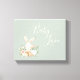 Dulce lienzo estirado con "Baby Love" en escritura con el conejito más lindo en una canasta de mimbre. Fondo verde sabio para un suave aspecto dulce. Perfecto para la guardería del bebé. 100% de satisfacción del cliente en "Zazzle"