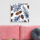 Cones de pino y ramas | Impresión de lienzo de pintura acuarela de invierno